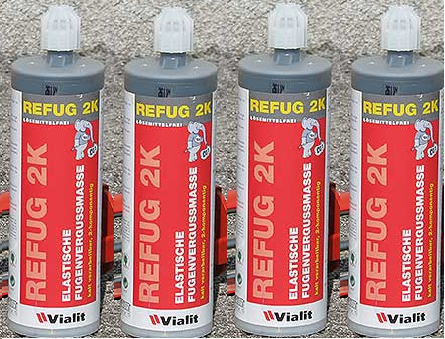 REFUG 2k ist eine kalt zu verarbeitende, 2-komponentige, lösemittelfreie Rissvergussmasse die reaktiv aushärtet und nicht nur qualitativ hochwertigst sondern auch beonders umweltfreundlich ist. Durch ihre gute Dauerelastizität (und -plastizität) dehnt sie sich im Falle einer Ausdehnung des Risses (Temperaturschwankungen/Jahreszeiten) mit. Neben der unkomplizierten Verarbeitung und der schnellen Aushärtung sprechen noch weitere Eigenschaften wie ausgezeichnete Wärme-, Kälte-, Alterungs- und Witterungsbeständigkeit sowie eine geringere Klebrigkeit der Oberfläche für REfug 2K.