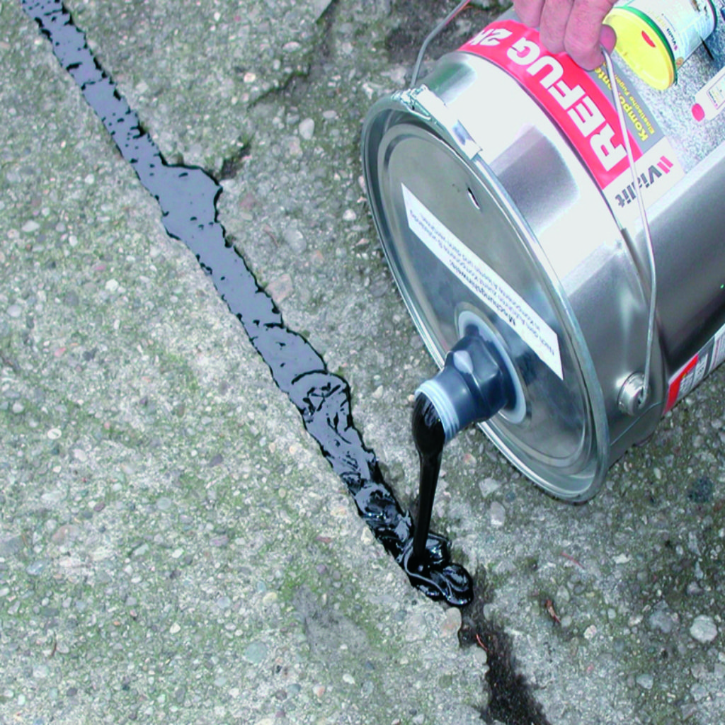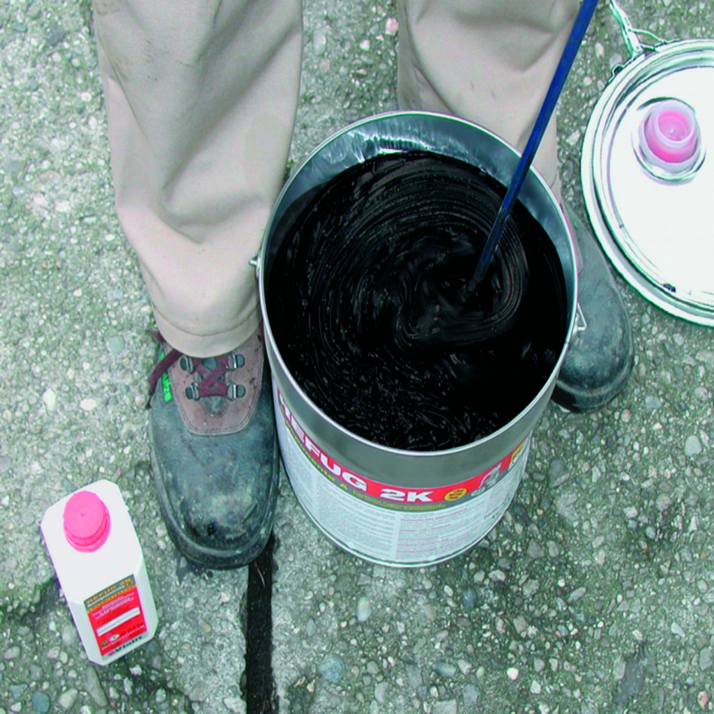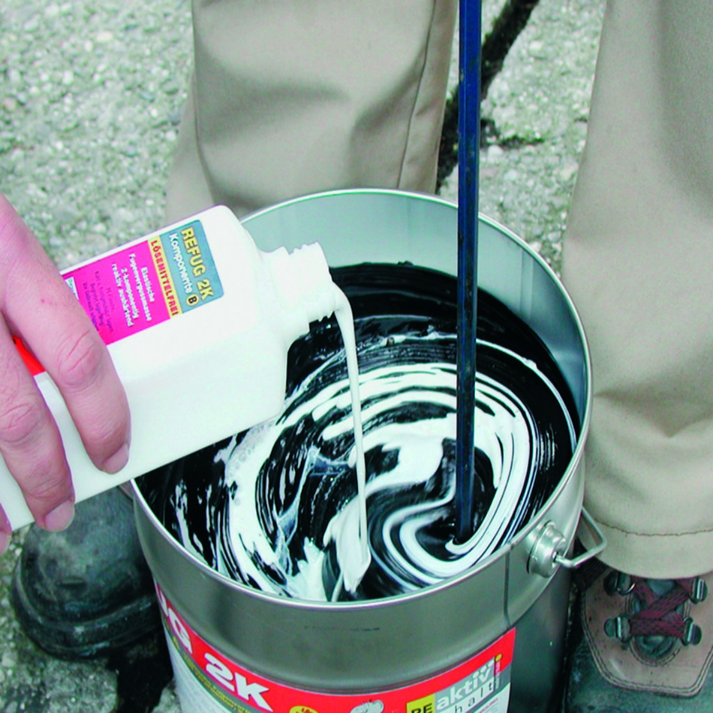 Unsere 2-komponentigen Rissvergussmassen bestehen aus einer Härterkomponente und dem Reaktivbitumen. Refug bleibt dauerhaft elastisch, klebt bei hohen Temperaturen nicht und ist frei von Lösemitteln.